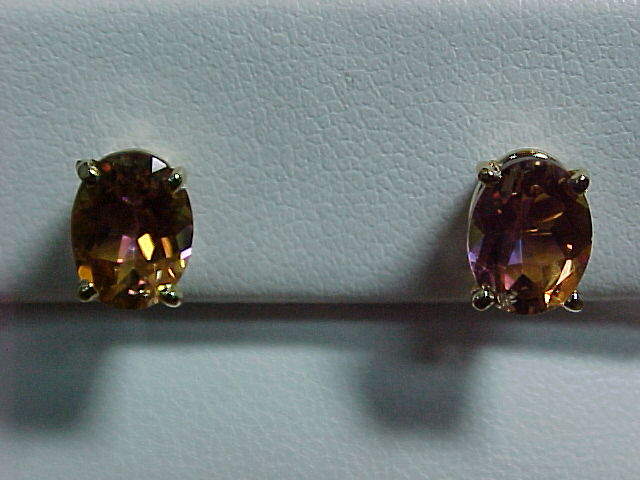 One Pair of Oval Peacock Topaz Earrings