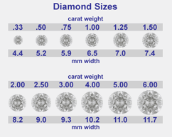 The diagram to the right shows the size of various carat weights of a diamond in relation to each other.