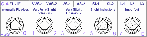 The scale ranges from F (Flawless) to I (Included) and is based on the visibility of inclusions at 10X magnification.